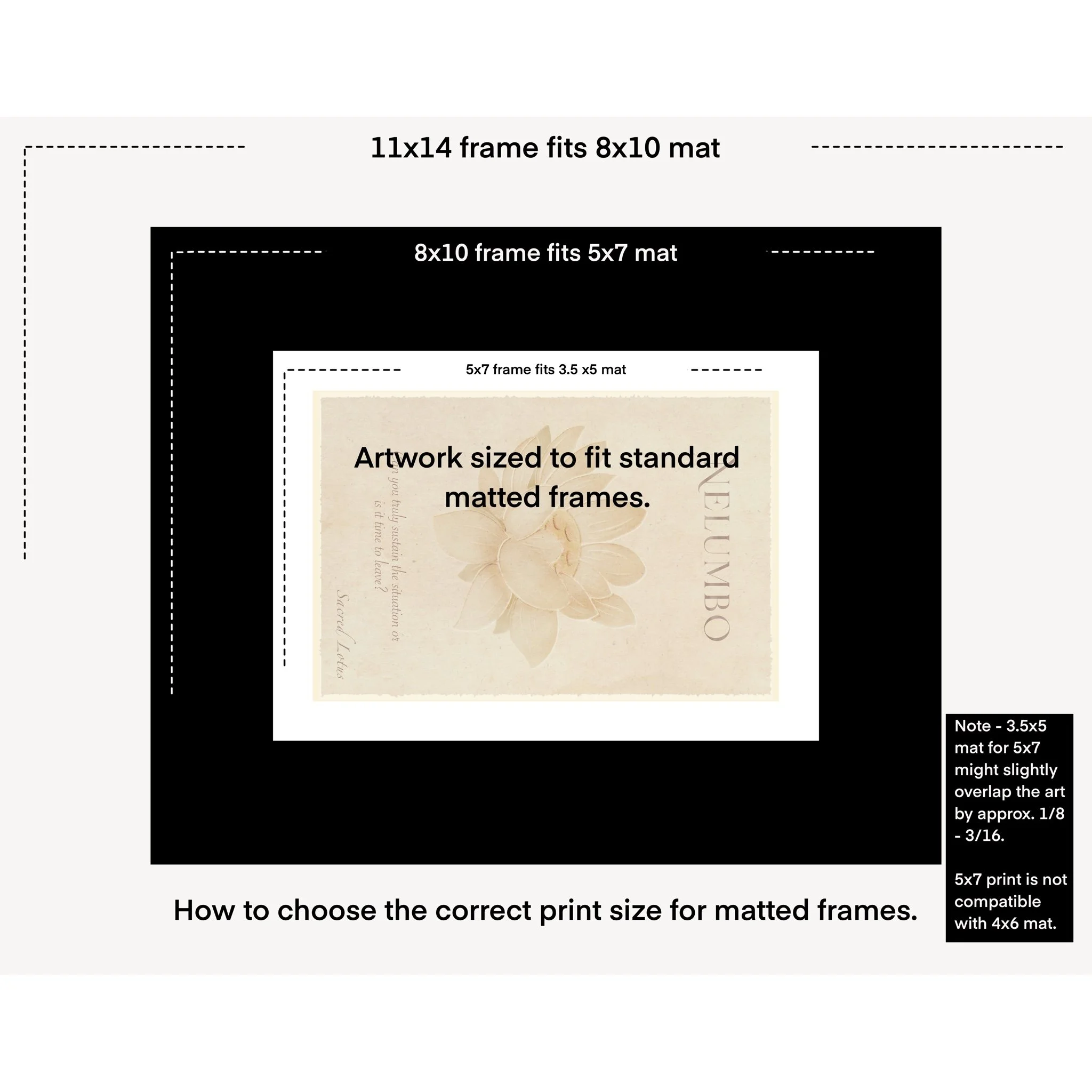 The prints are formatted so the art fits as it’s meant to be shown in the mat window or standalone without the need for matting.